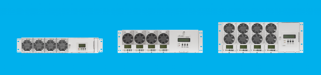 虹碩科技交換式直流供電設備組成之直流供電系統,提供穩定可靠不中斷之直流電源,供應電信機房之直流通信設備等使用。系統採用 N+1 配置,在結構上採用模組化設計,可活電插拔。易於安裝,擴充與維護。本系統設備由交換式充電機、CZ1型系統控制及監視單元、交流輸入無熔線斷路器負載開關、蓄電池開關等部份組成。負載開關及監控部份,備有許多的分路供用戶選用及分配內部使用。